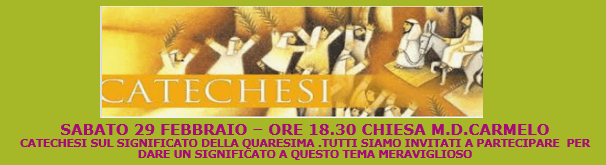 Ore 18.30 - CATECHESI sul significato della Quaresima. Tutti siamo invitati a partecipare per dare un significato a questo tema meraviglioso.