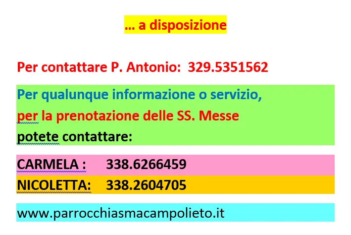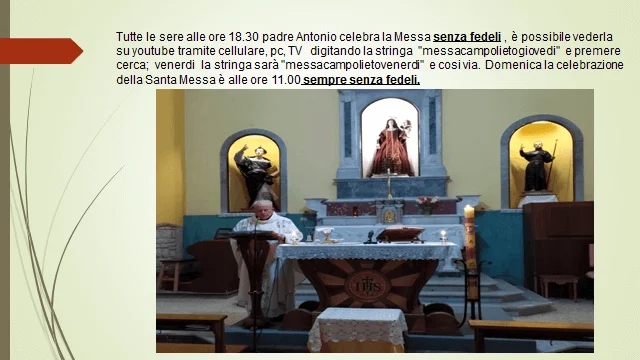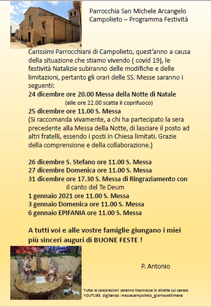 Appena dopo Pasqua padre Antonio inizierà la benedizione delle famiglie accompagnato da un collaboratore della parrocchia, seguirà a breve un calendario con i giorni e le località.
