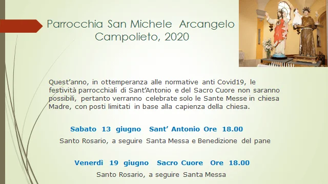 La mia Prima Comunione : Domenica 7 giugno 2020 chiesa San Michele Arcangelo: data da definire